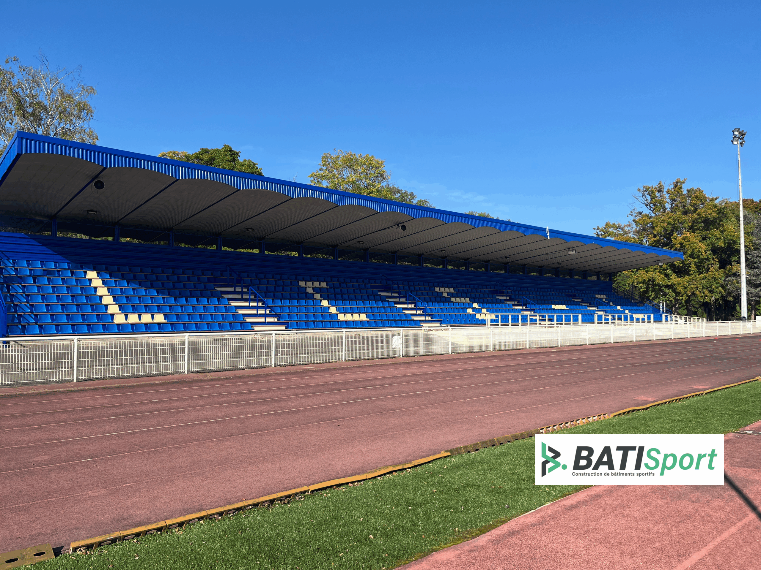 Nouvelle tribune du stade Jean Leroy à Saint George sur Eure (28). Une réalisation signée Batisport®.